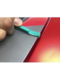 Yellotools WrapSticks are available in 7 different shapes and 5 materials, each designed for specific applications such as inserting film under rubber seals, applying vinyl to trim strips and recesses, or wrapping door handles, headlight housings, and parking sensors.