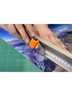 Pour les clients soucieux de leur budget, nous offrons le SafetyRuler Platin Combo: une règle de coupe et une souris de coupe combinées en un duo imbattable pour couper vinyles et plastiques. Votre atelier d'affichage sera ainsi parfaitement équipé pour tous les travaux de coupe courants!